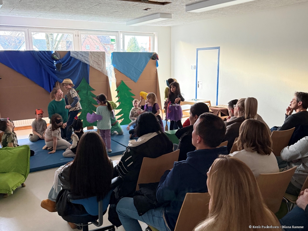 Geschichten wecken Fantasie. In der Städtischen Kita Lange Wenne in Paderborn wurde aus einer Vorlesegeschichte jetzt lebendiges Theater: 22 Kitakinder mit und ohne internationale Familiengeschichte entwickelten aus einem Buch ein eigenes Stück. Sie schlüpften in verschiedene Rollen und brachten ihre eigenen Ideen auf die Bühne.
